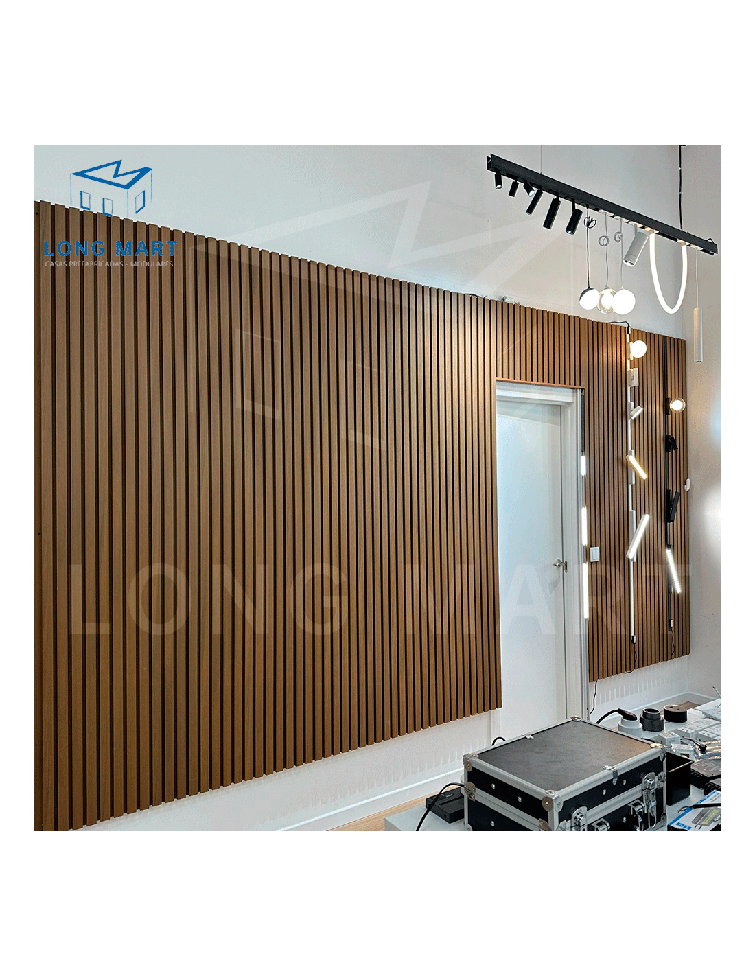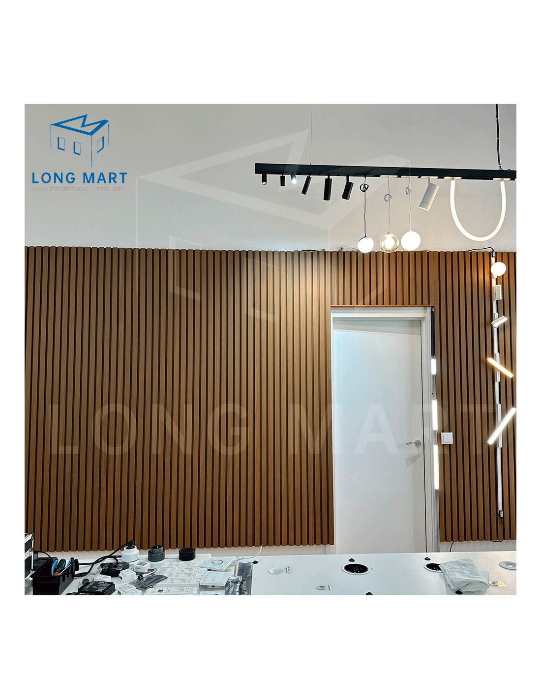 El revestimiento de pared está fabricado con WPC de coextrusión, lo que le otorga una mayor resistencia a arañazos, humedad y rayos UV.